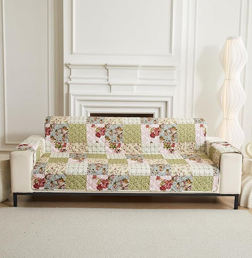 Polyester Sofa Cover Mat Reversible Couch Protector- Green Floral