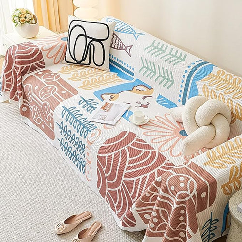 Boho Couch Cover Chenille Fabric Sofa Slipcover (French Summer)