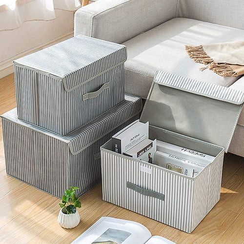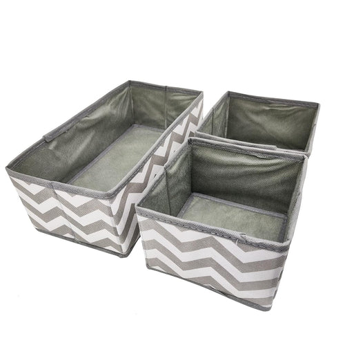 Storage Box/ Organizer Cube for Closet/ Dresser/ Drawer - Set of 3 Grey Wave