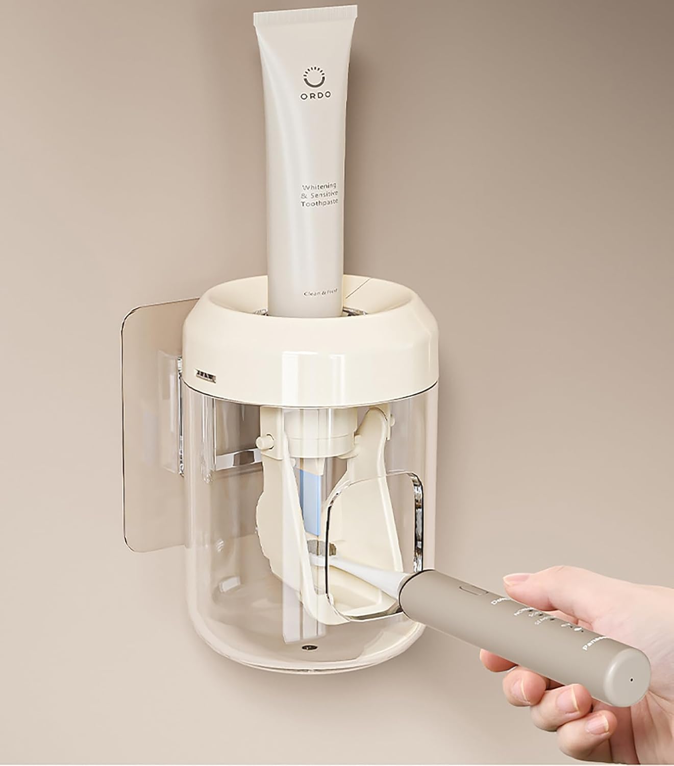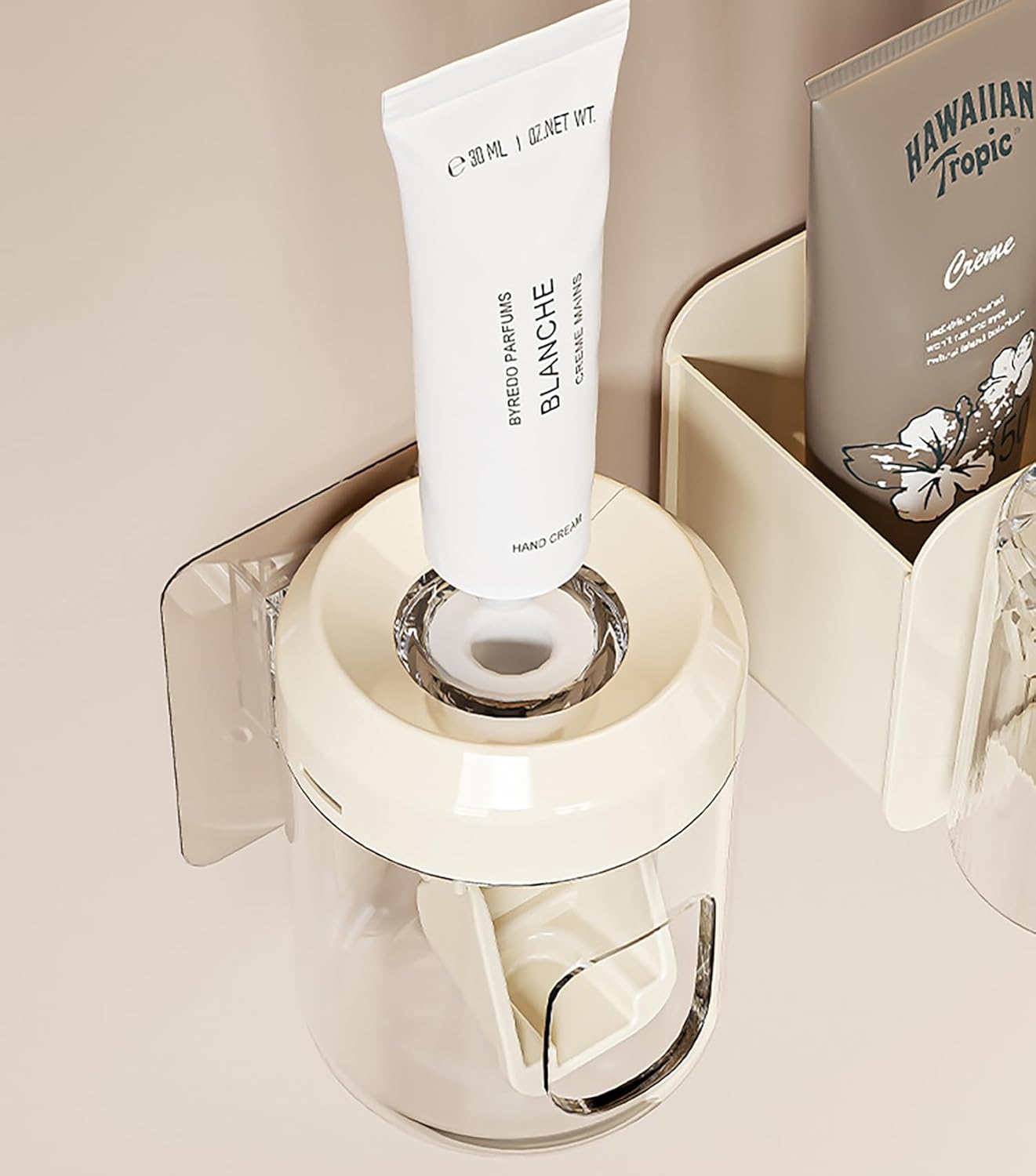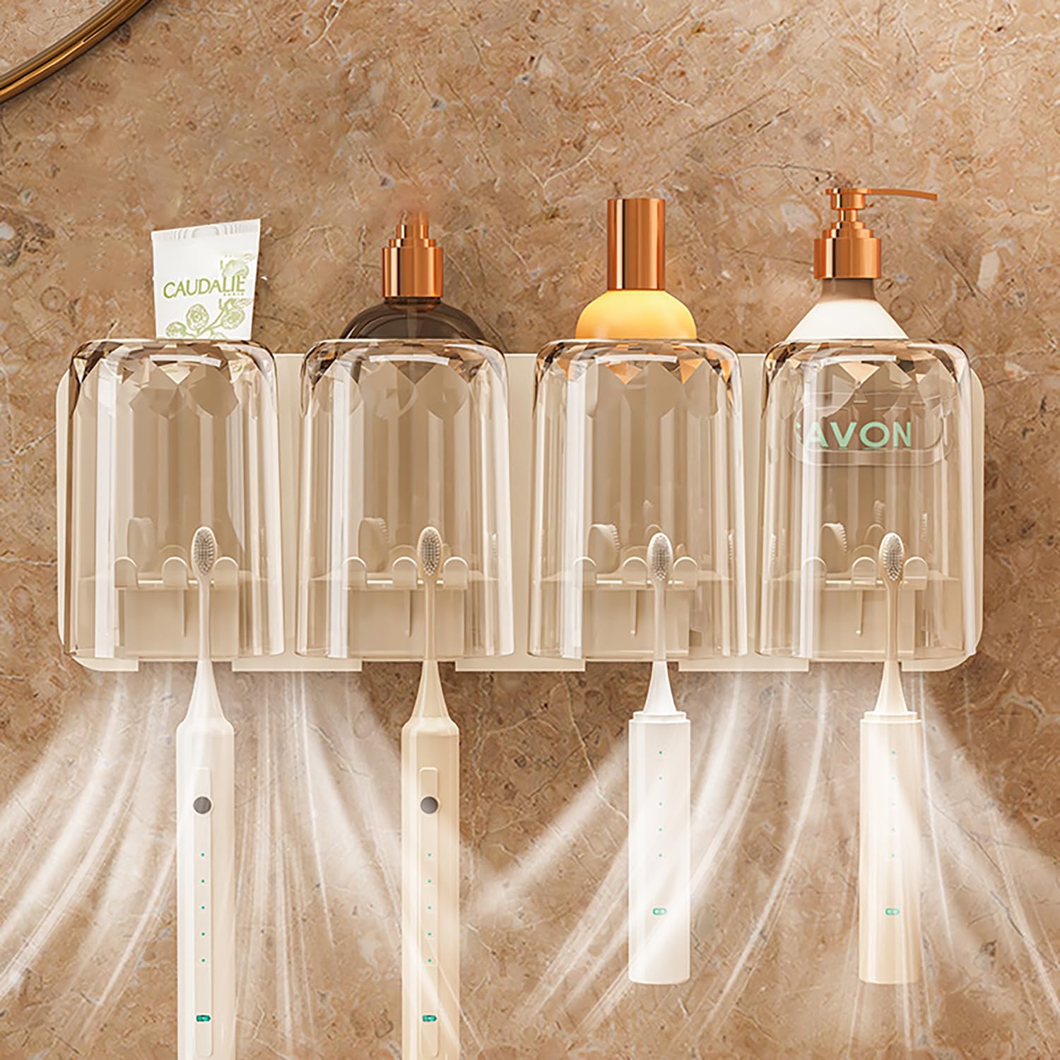 4-Slot Toothbrush Rack, Including 1 Toothpaste Squeezer, 4 Mouthwash Cups (Cream)