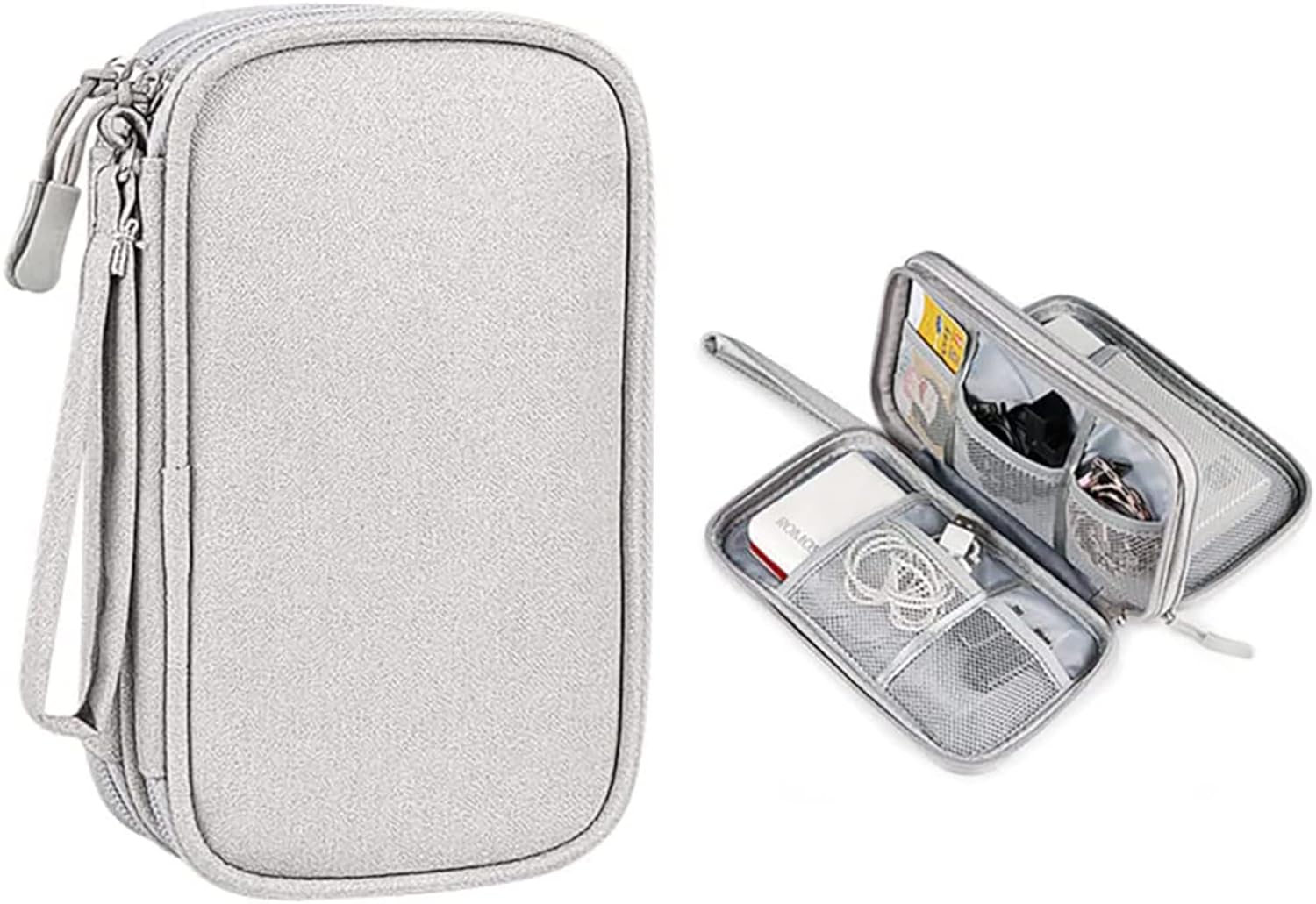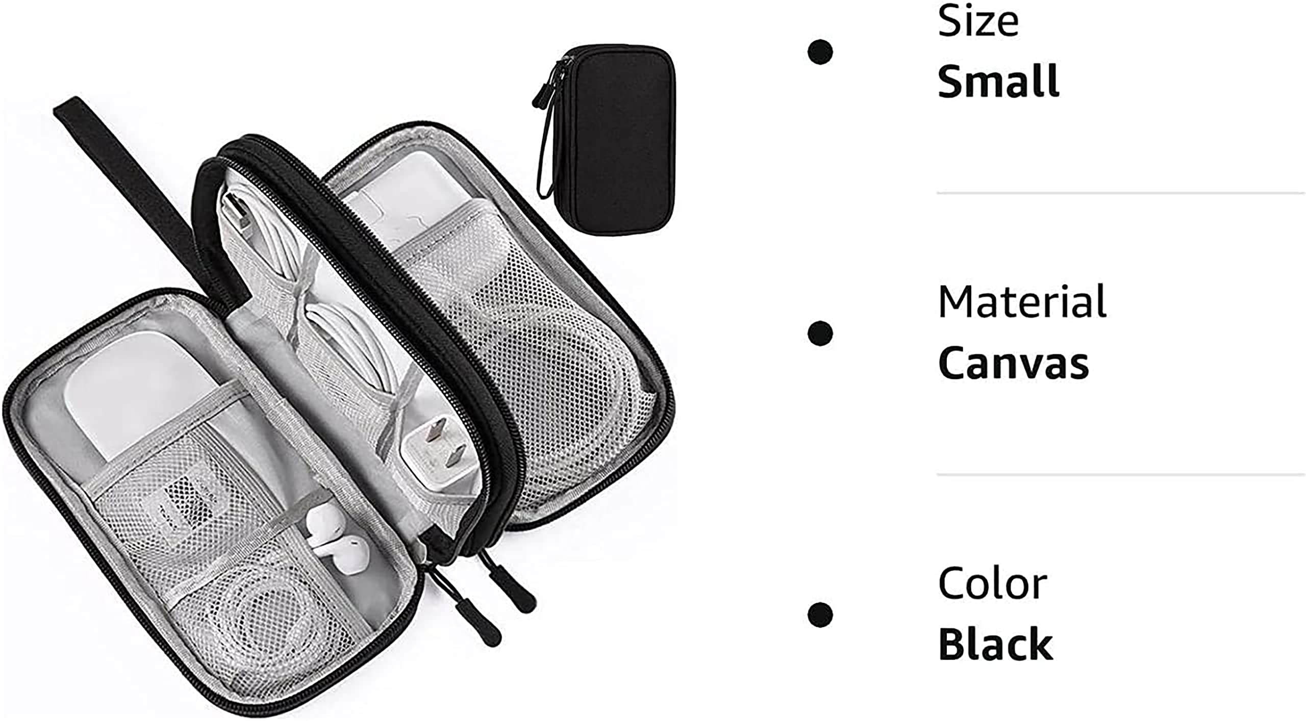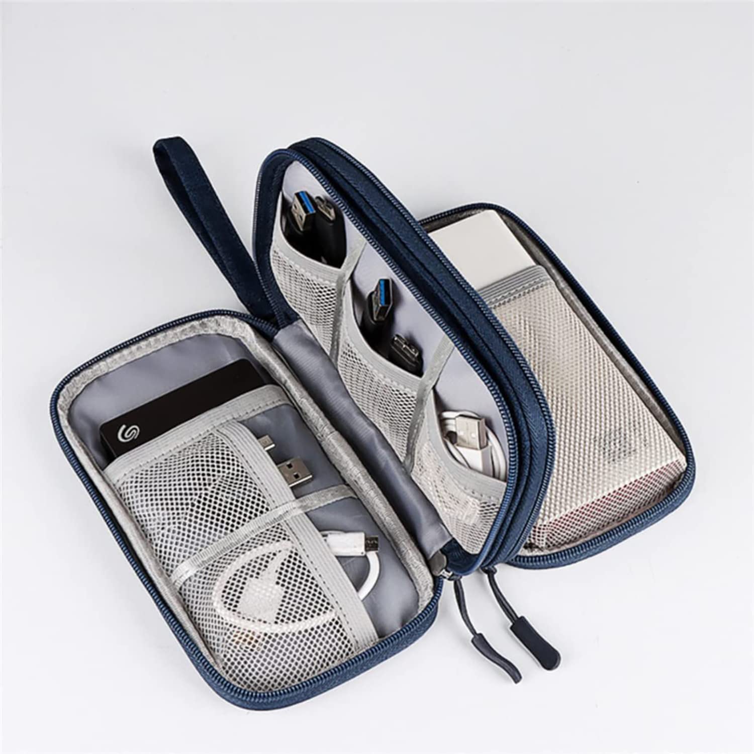 • MULTIPLE USAGE: It can hold power adapters, charger, batteries, power bank,hard drive, memory cards,digital camera,pen,cables, external driver, flashdrive, basic first aid items, chargers, several USB cables, makeup, memory cards,key, smartphones and such.