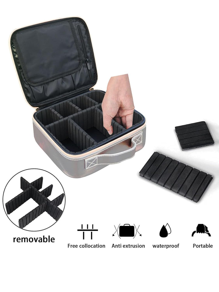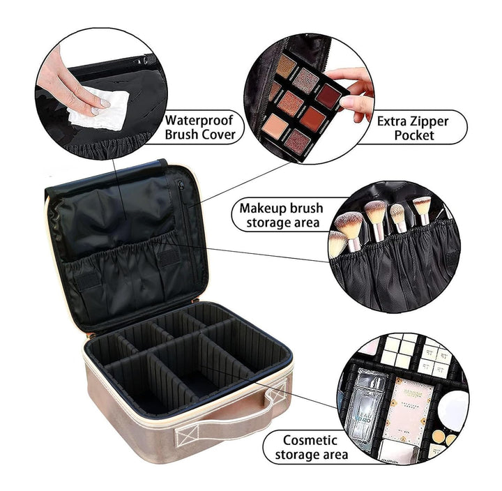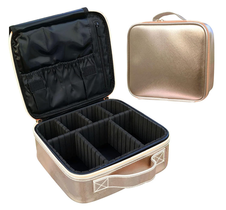 Makeup Cosmetic Storage Case with Adjustable Compartment (Shimmer Gold)