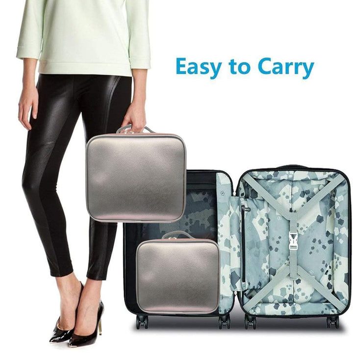 • Dual Zipper Closure Design: Designed with dual zippers and magic tape closure for easy access to your makeup items. Material: Nylon + EVA. Dimension: (25cm x 22cm x 9cm).