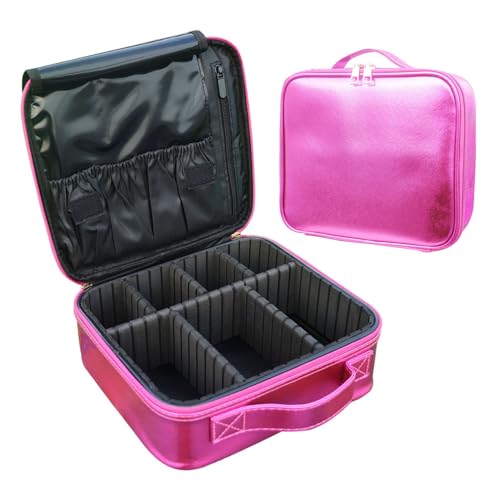 Makeup Cosmetic Storage Case with Adjustable Compartment (Shimmer Pink)