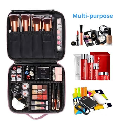 • Dual Zipper Closure Design: Designed with dual zippers and magic tape closure for easy access to your makeup items. Material: Nylon + EVA. Dimension: (25cm x 22cm x 9cm).