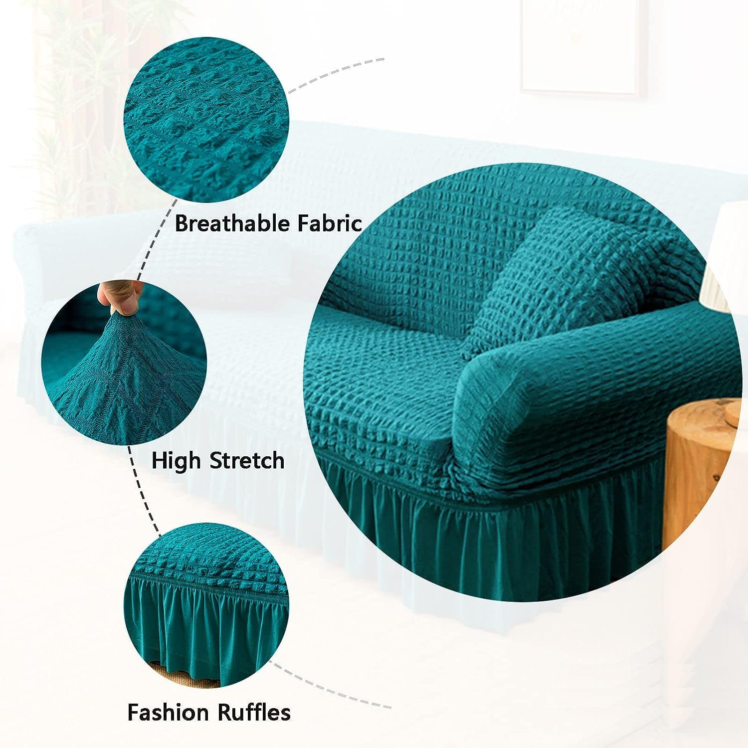 Turkish Bubble Frill 280 GSM Sofa Slipcovers (Teal)