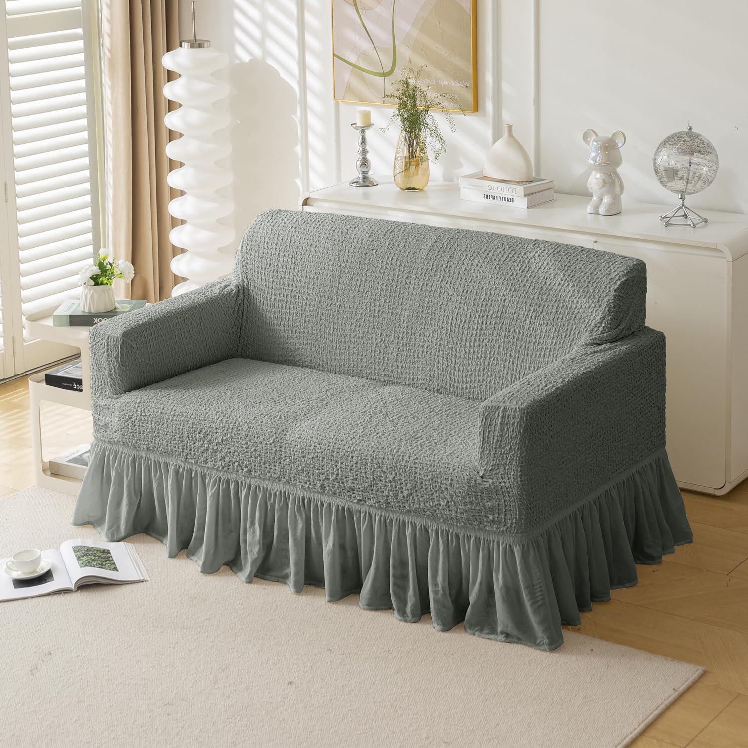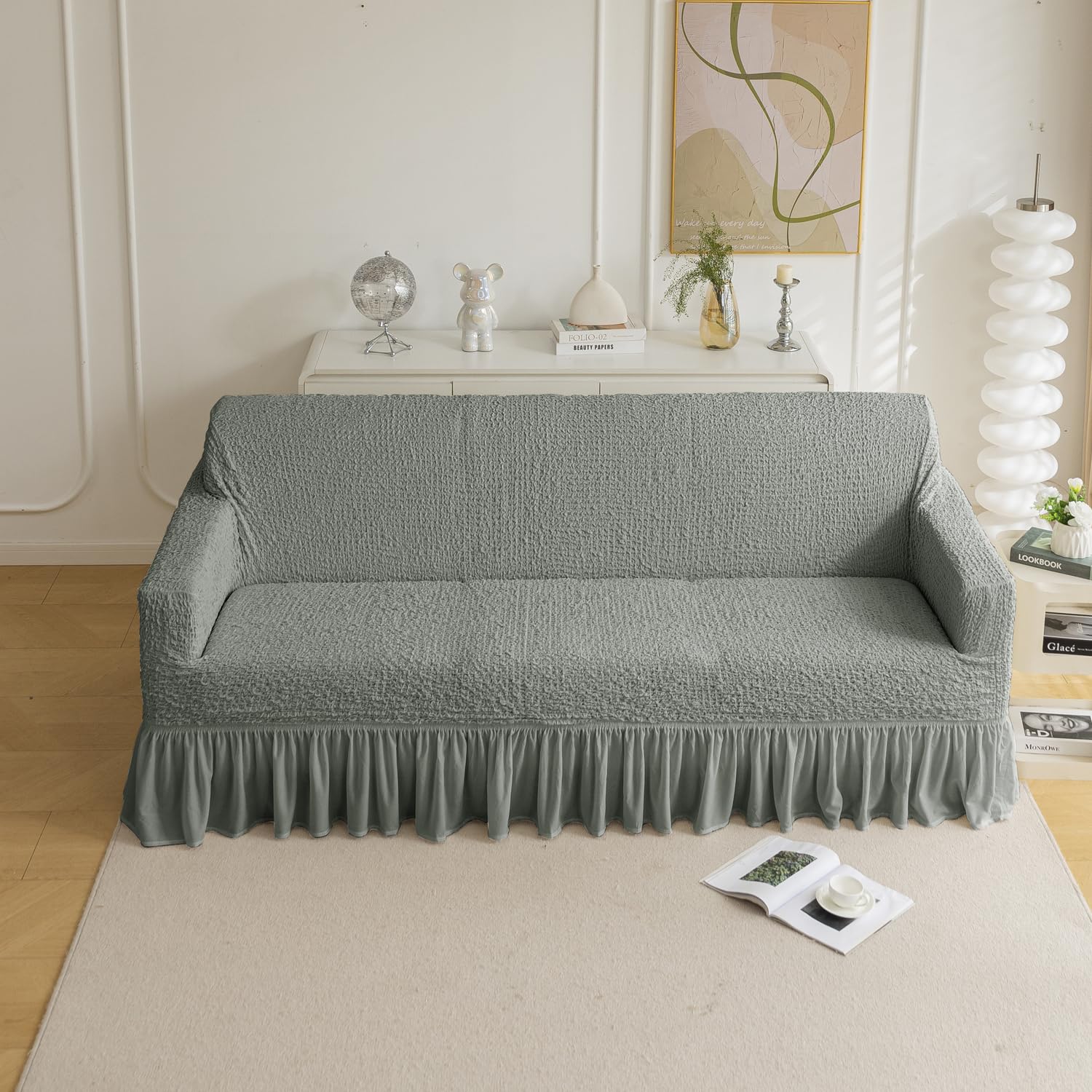 The Light Blue Jacquard cover is perfect for summer vibes! The elastic edges keep it in place even when my kids jump on the sofa.
