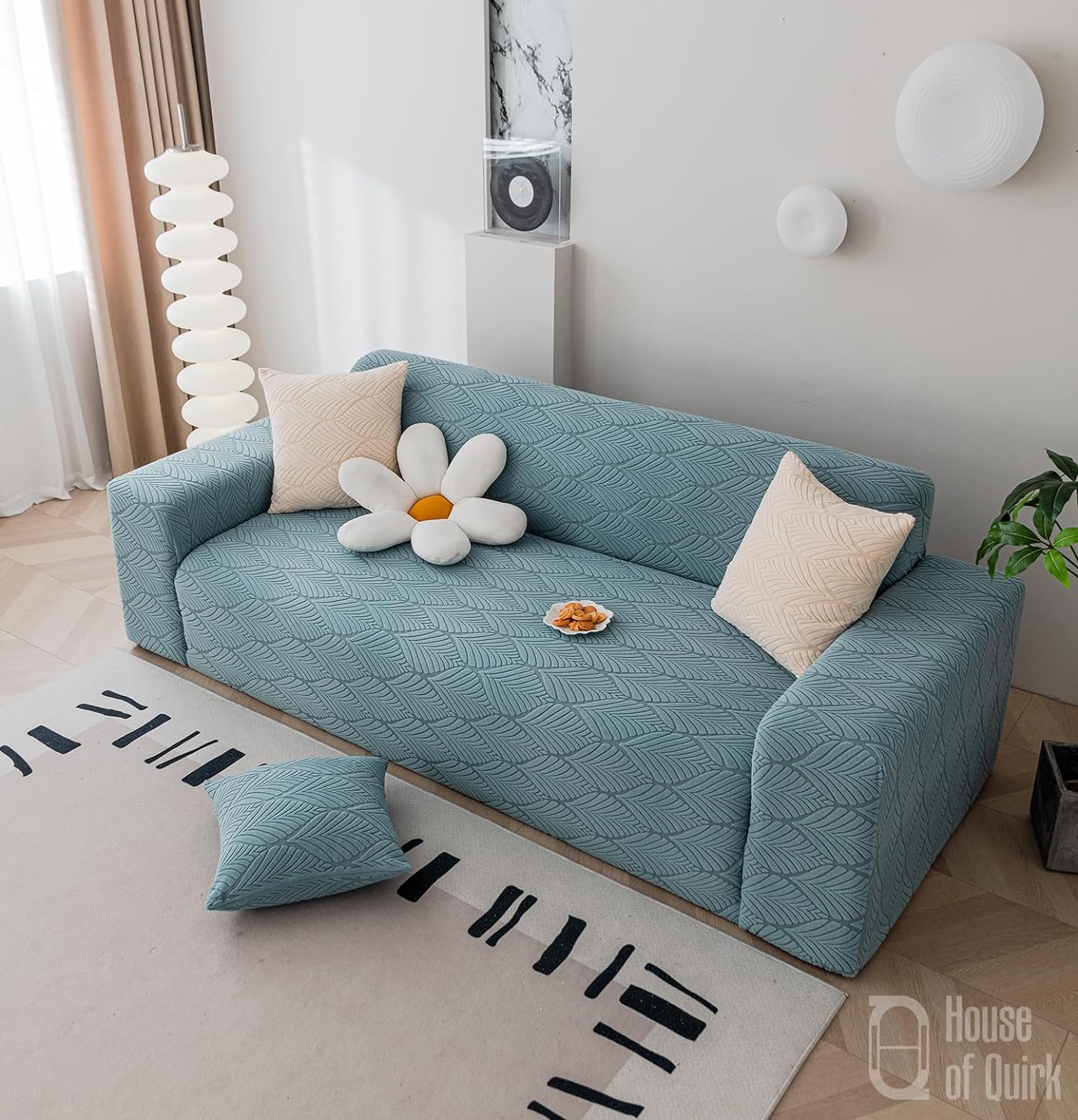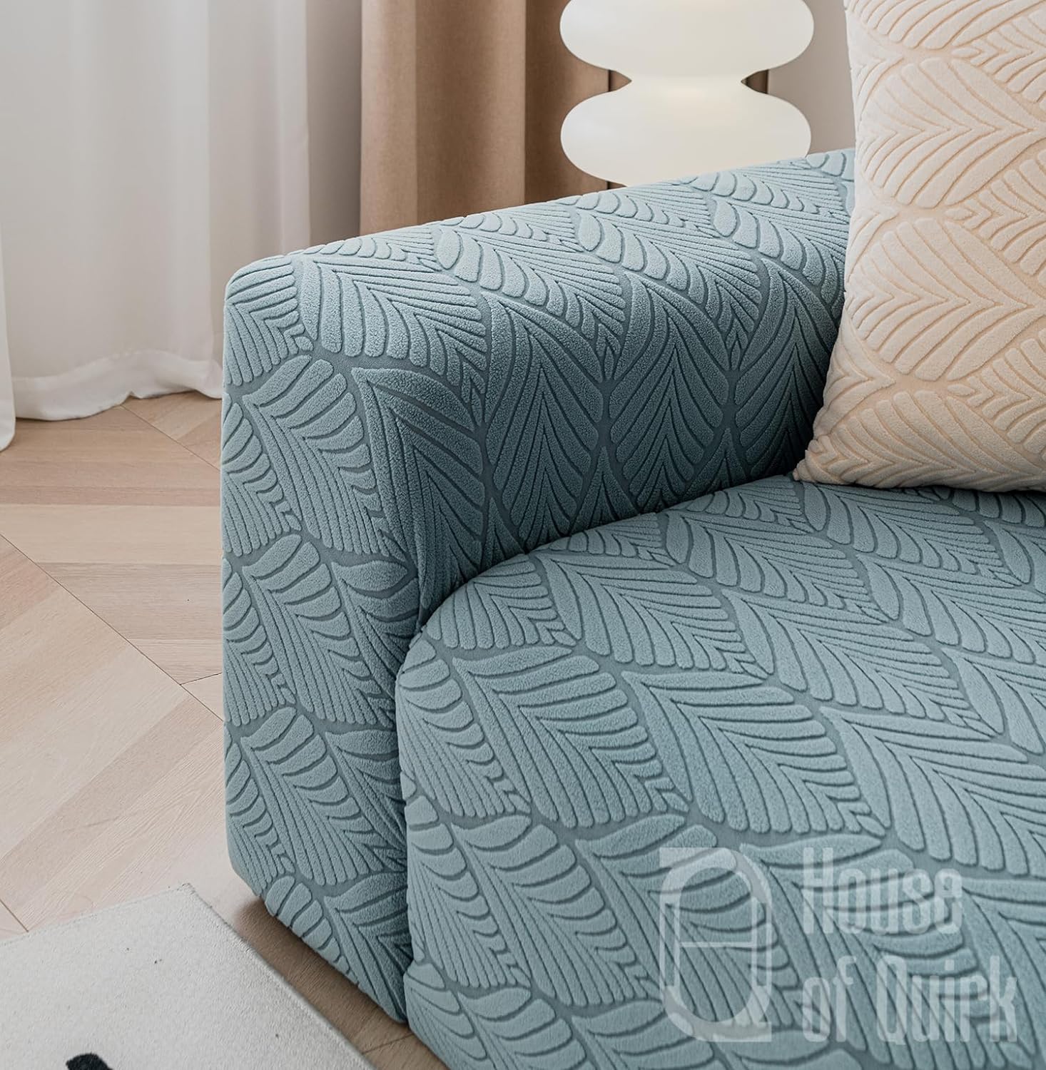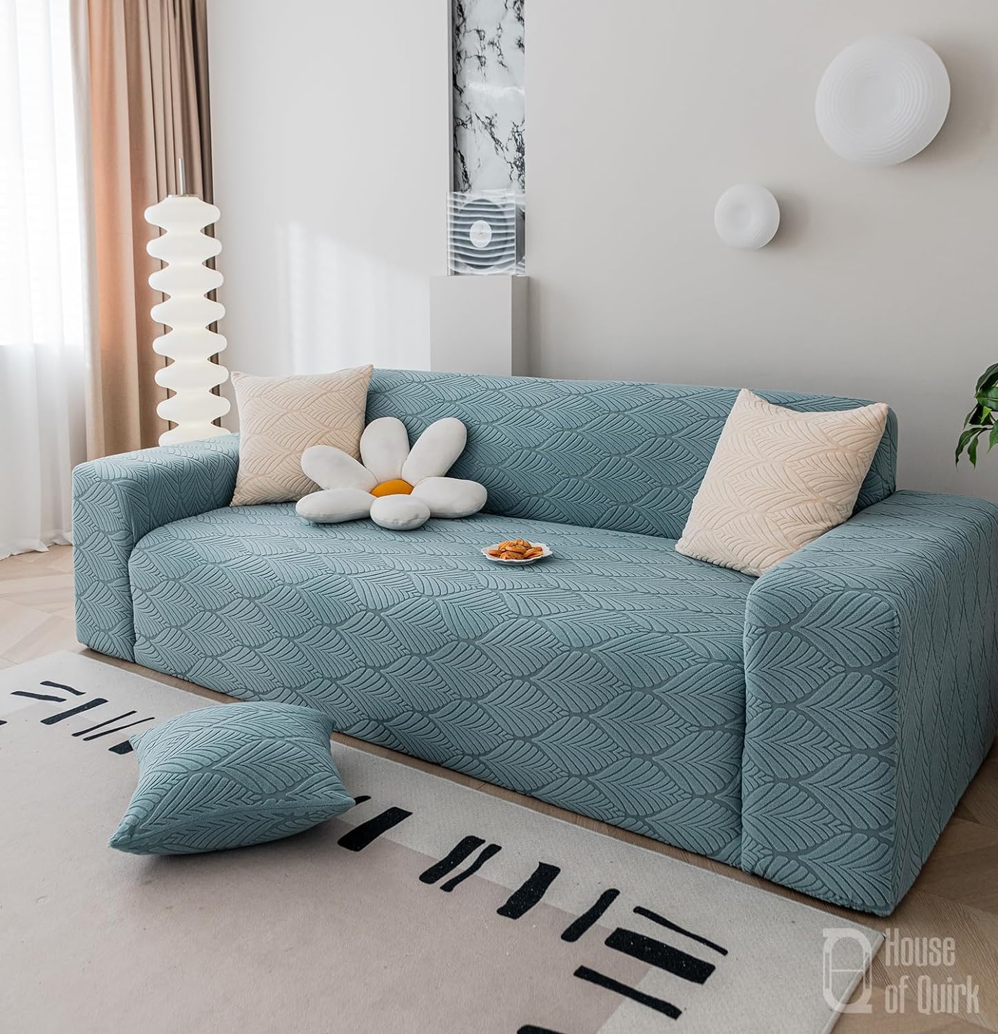 The Light Blue Jacquard cover is perfect for summer vibes! The elastic edges keep it in place even when my kids jump on the sofa.